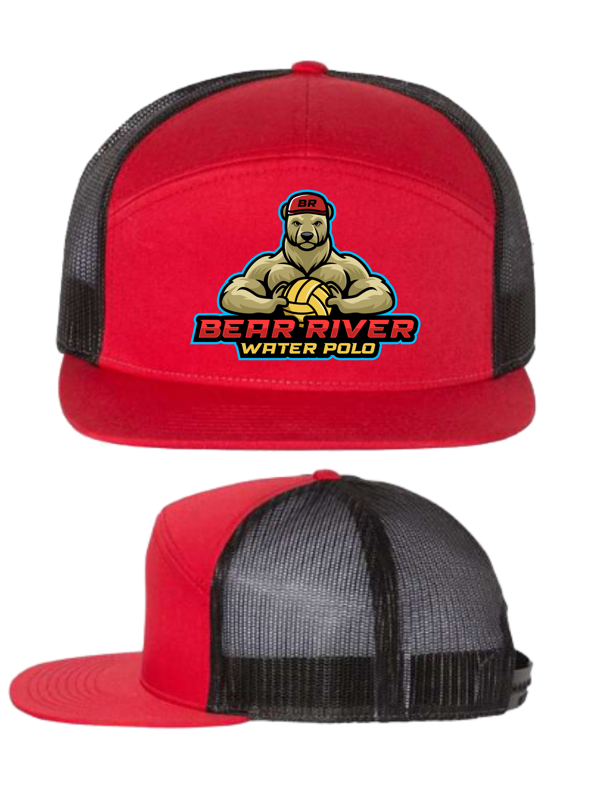 Bear River Water Polo Richardson 168 Seven-Panel Trucker Cap bear logo
